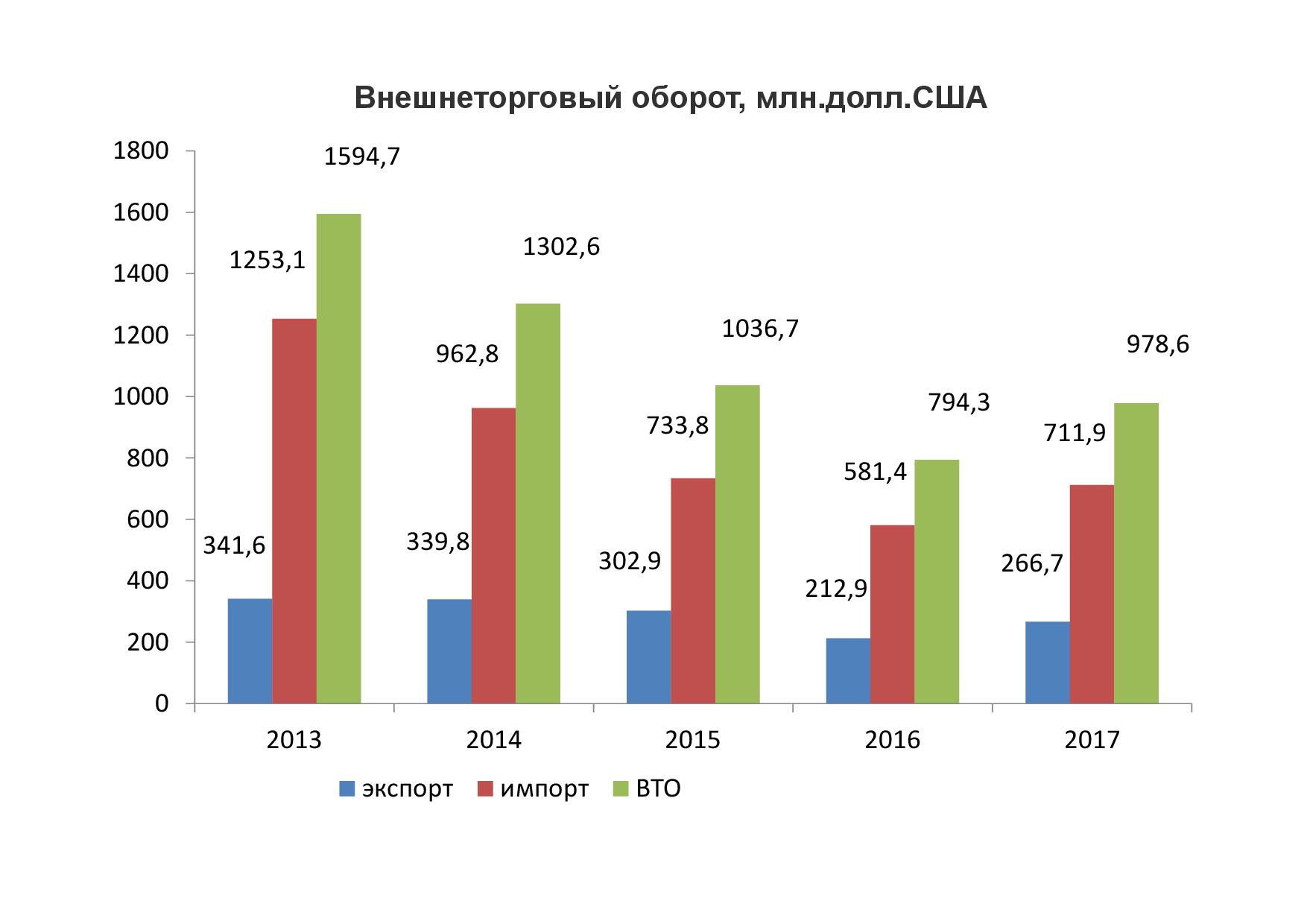 Внешнеторговый оборот области составил 978,6 млн. долларов США (123,2 процента к уровню 2016 года), в том числе экспорт – 266,7 млн. долларов США (125,3 процента), импорт – 711,9 млн. долларов США (122,5 процента).