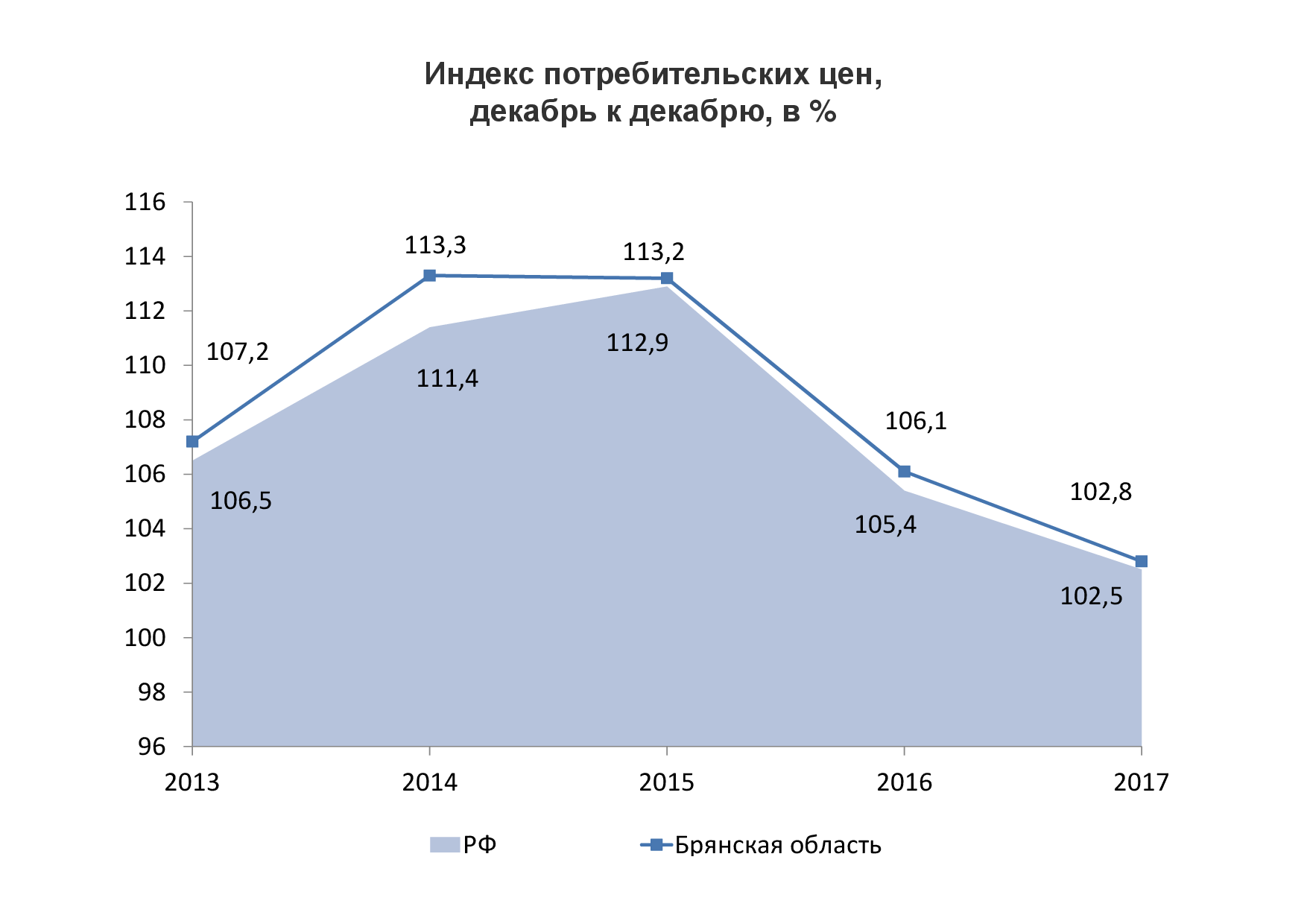 Индекс потребительских цен в среднегодовом исчислении за 2017 год составил 104,6 процента, за декабрь 2017 года к декабрю 2016 года – 102,8 процента.