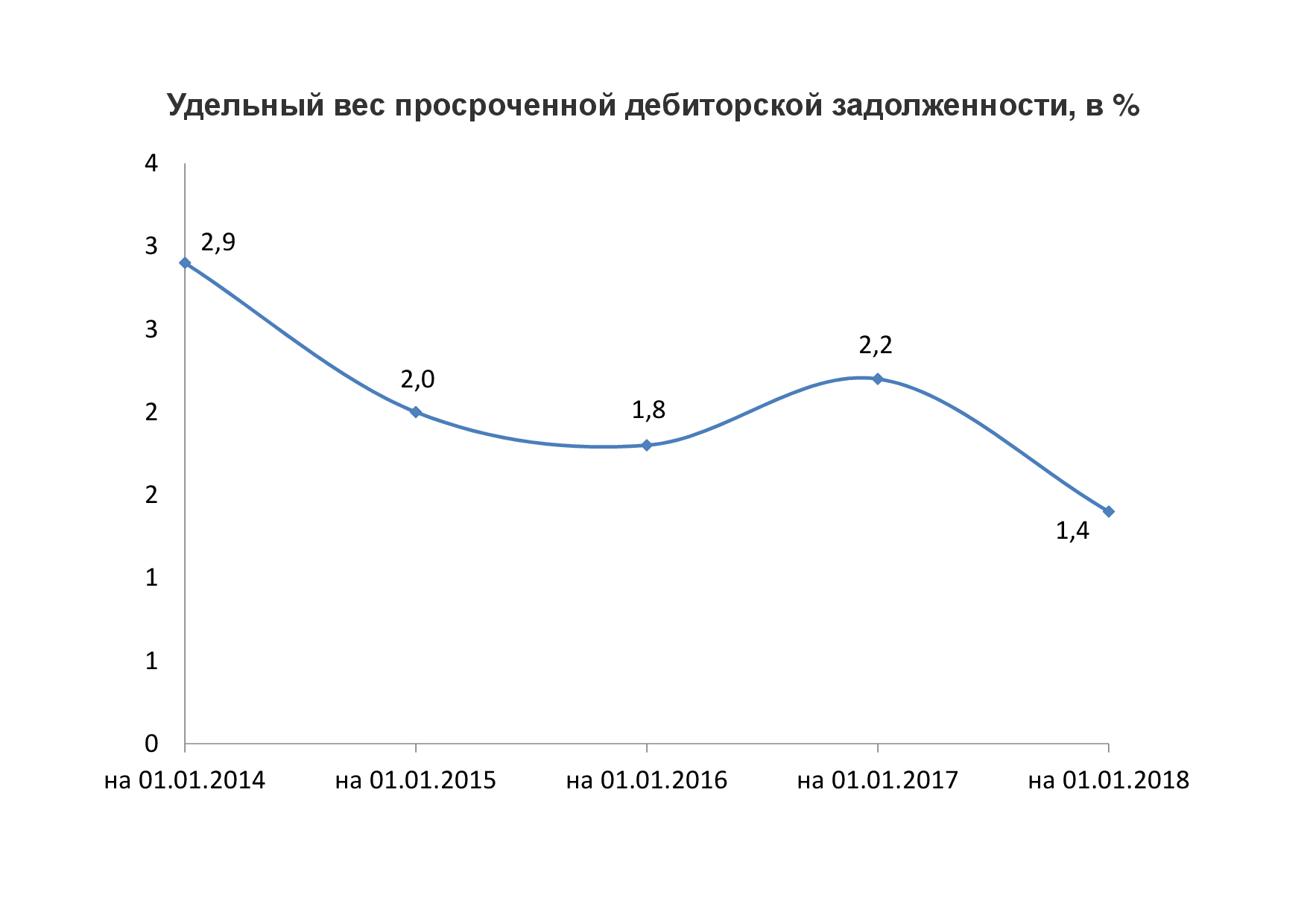 Дебиторская задолженность на 1 января 2018 года составила 83,4 млрд. рублей, из нее просроченная – 1,2 млрд. рублей (1,4 процента в общей сумме задолженности).