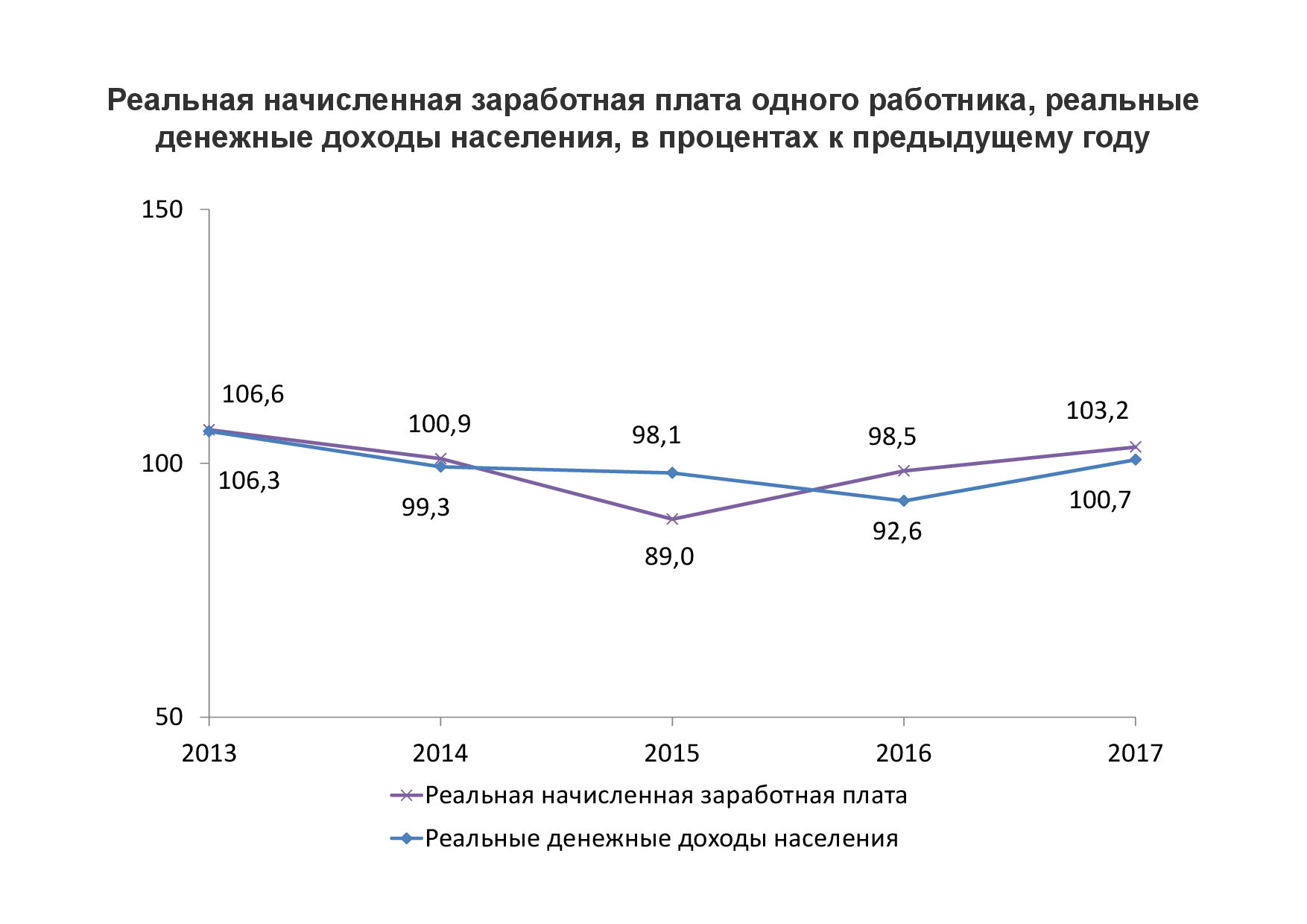 Среднедушевые денежные доходы в среднем за год сложились в сумме 26913,9 рубля (больше на 6,2 процента), реальные денежные доходы населения составили 101,0 процент к уровню 2016 года.