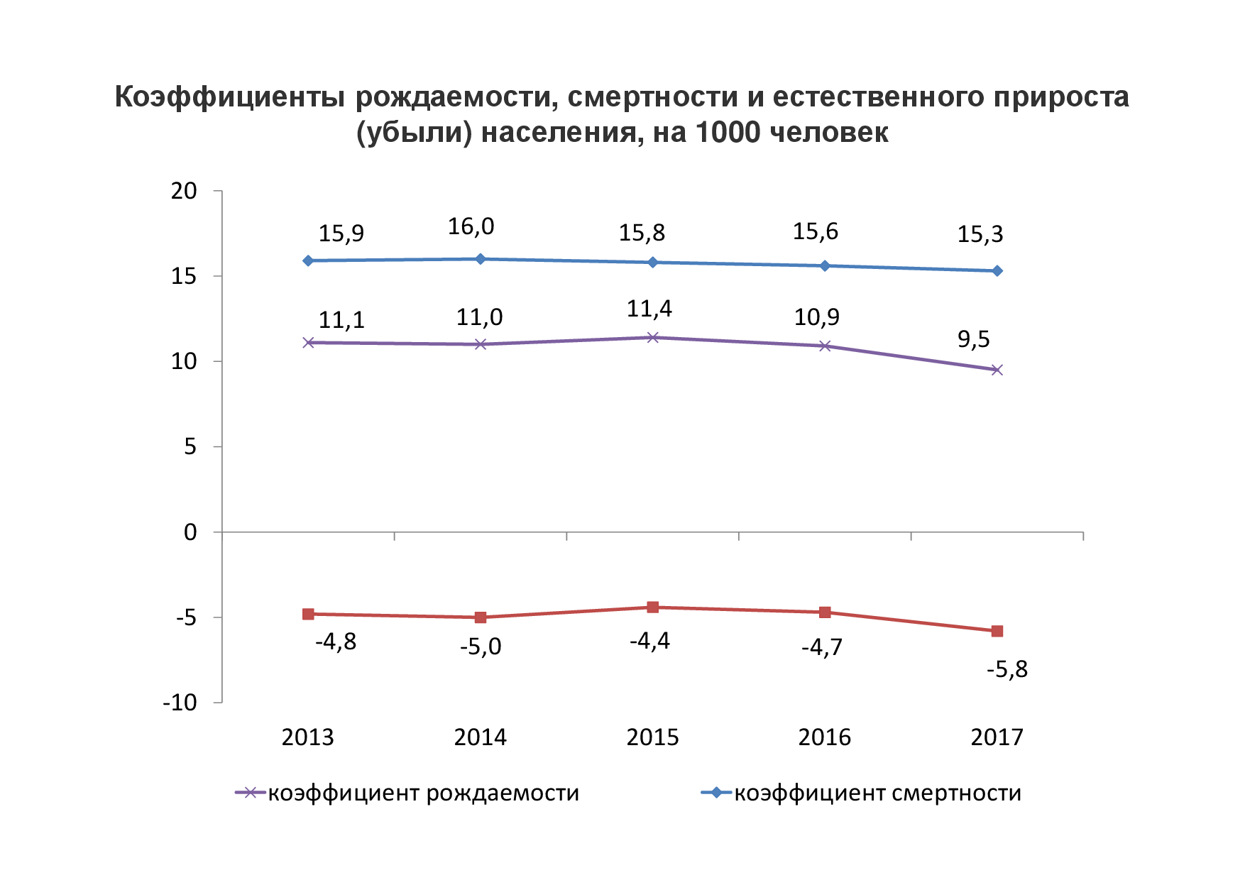 Коэффициент естественной убыли населения составил 5,8 человека на 1000 населения (в 2016 году – 4,7 человека на 1000 населения).