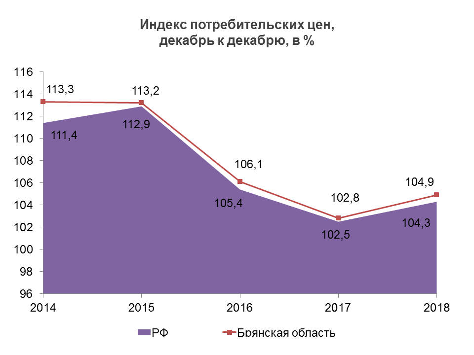 Индекс потребительских цен в среднегодовом исчислении за 2018 год составил 102,9 процента, за декабрь 2018 года к декабрю 2017 года – 104,9 процента.