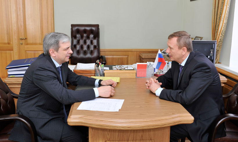 29 апреля Губернатор Николай Денин встретился с исполнительным директором Попечительского совета по воссозданию собора Успения Пресвятой Богородицы Свенского монастыря Евгением Томаком.