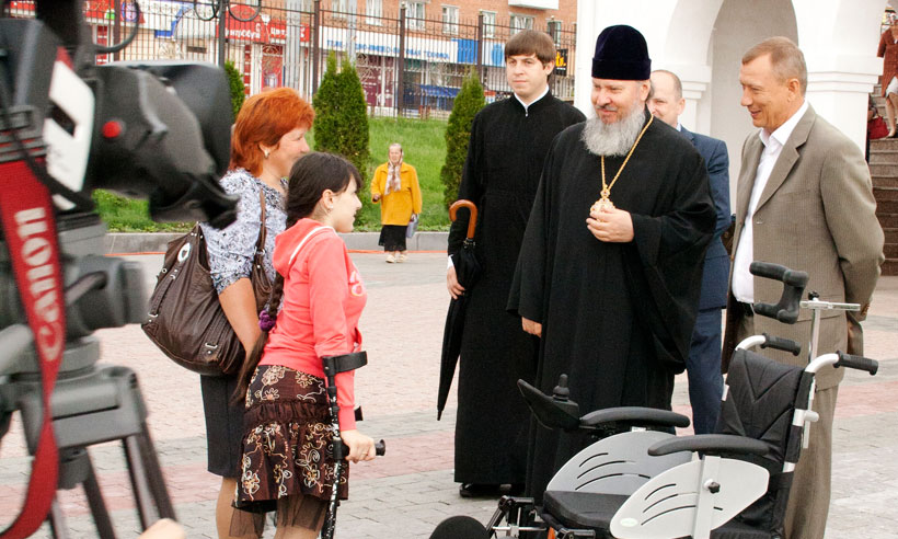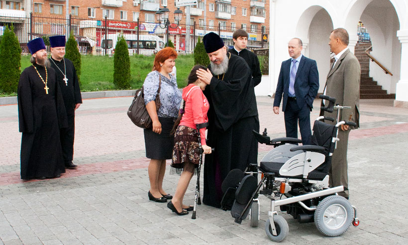 28 мая Губернатор Николай Денин и Епископ Брянский и Севский Александр вручили кресло-коляску с электроприводом девочке-инвалиду Виктории Рословец.