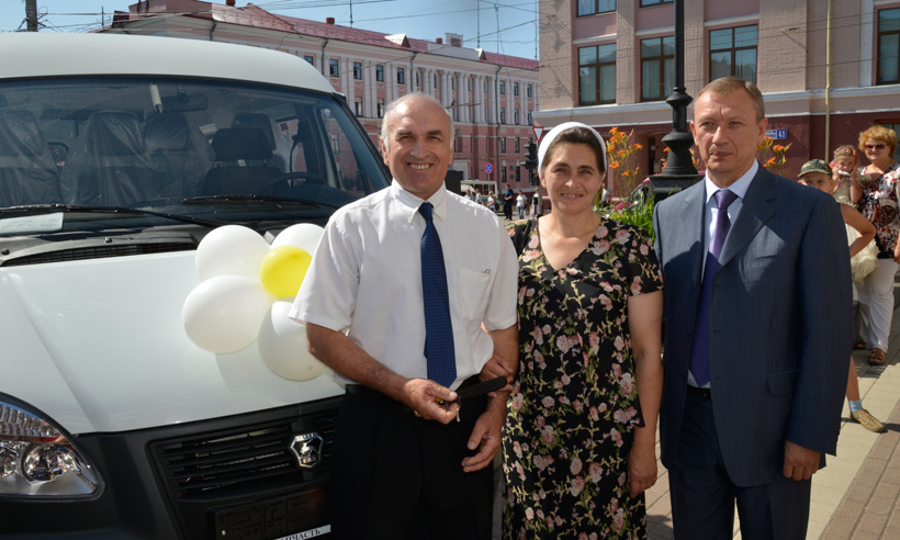 Автомобили «Газель» получили три многодетные семьи: Щербенко Николая Николаевича и Любови Михайловны из Погарского района, Чубаковых Петра Павловича и Галины Николаевны из Брянска и Абасовых Афлатуна Салеховича и Елены Ивановны из Сельцо.