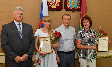 Сегодня Губернатор Николай Денин вручил брянской легкоатлетке Екатерине Шарминой (Мартыновой) и заслуженному тренеру России Светлане Беловой крупные денежные призы.