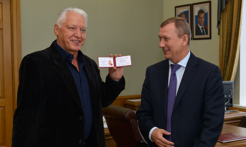 В свою очередь, Николай Денин вручил народному артисту России, Украины и Молдовы членский билет Союза композиторов России. Губернатор был инициатором ходатайства, направленного весной в эту организацию. Её руководители рассмотрели обращение и единогласно проголосовали за принятие Александра Морозова в Союз композиторов.