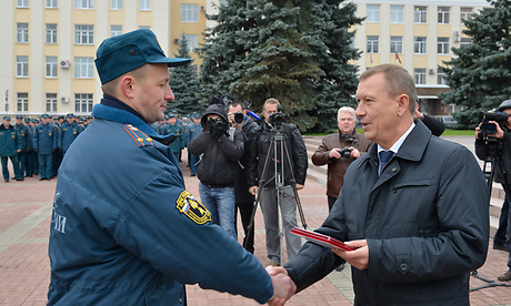 Глава региона поздравил специалистов спасательной службы с приближающимся Днём гражданской обороны (он будет отмечаться 4 октября), поблагодарил пожарных за самоотверженную службу и вручил наиболее достойным медали в честь «70-летия освобождения Брянской области». Среди тех, кому вручены памятные медали — спасатели, отличившиеся при ликвидации последствий наводнения на Дальнем Востоке. Они вернулись из командировки всего несколько дней назад.