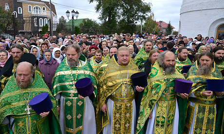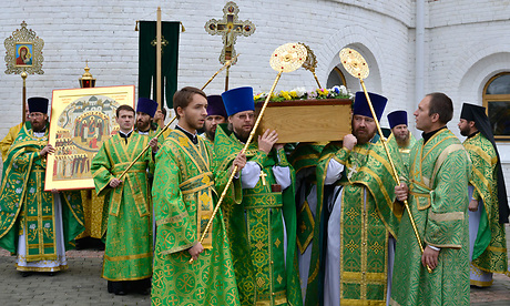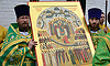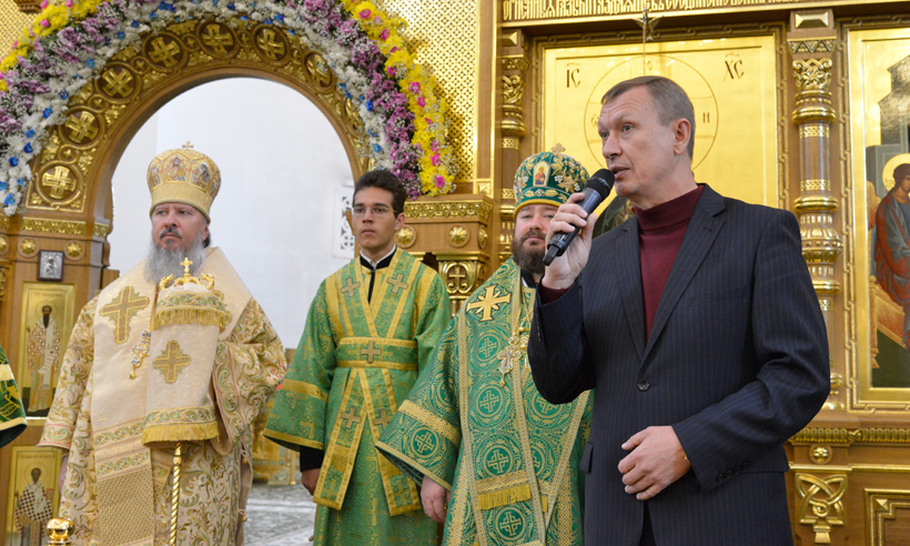 В центре собора на поклонение верующим была выставлена рака с мощами Преподобного Олега Брянского.