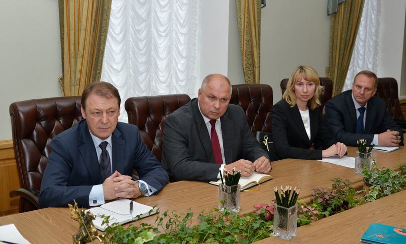 Сегодня Губернатор Николай Денин встретился с председателем совета директоров украинской компании «Талан» Николаем Лавриком и генеральным директором компании Андреем Лавриком. Во встрече также принимали участие заместитель Губернатора Андрей Пономарев, директор департамента экономического развития Брянской области Геннадий Сафонов, начальник областного управления имущественных отношений Наталья Карева.