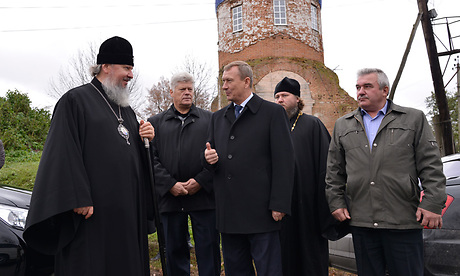 Побывали высокие гости и в старинном храме 19 века в честь Архангела Михаила, восстанавливаемый при активном участии отца Аркадия.