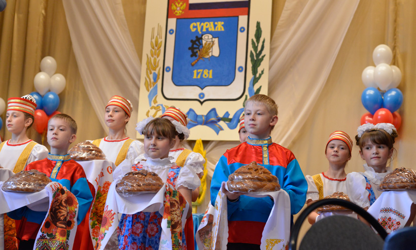 Праздник продолжился в районном Доме культуры. Протоиерей Димитрий благословил на дары урожая и добрые дела, вручив руководству района икону Божией Матери «Спорительница хлебов». После со сцены звучали слова благодарности в адрес тех, кто вложил свой труд в высокое звание «Суражский район — район-победитель!», кто живет и работает на благо процветания родной суражской земли.