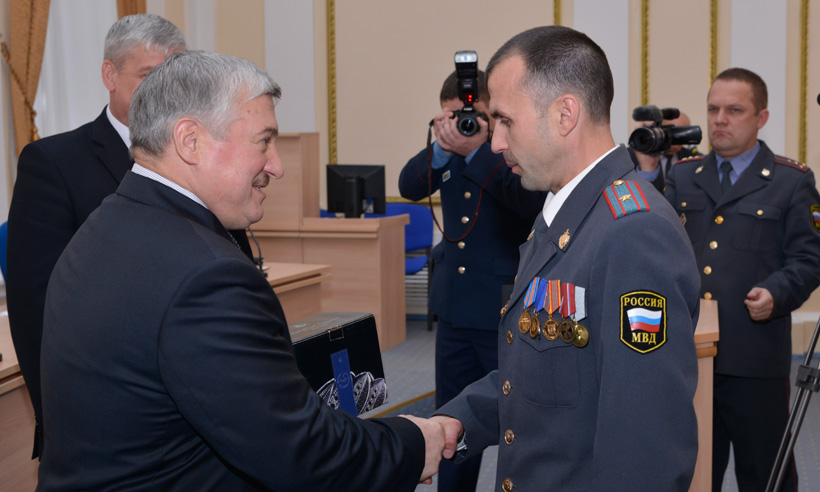По представлению руководства УМВД России по Брянской области за образцовое исполнение служебных обязанностей администрация Губернатора Брянской области и Правительства Брянской области, областная Дума и главный федеральный инспектор по Брянской области наградили лучших сотрудников органов внутренних дел.