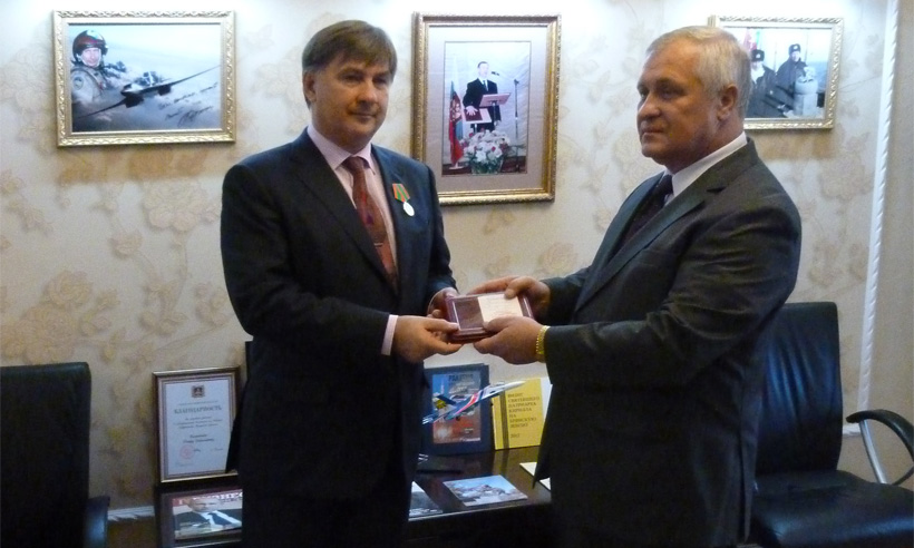 Так же в ходе встречи Федор Костюченко вручил Владимиру Каляпину памятную медаль «70 лет освобождения Брянской области» и поблагодарил за большой вклад в организацию торжественного отправления поезда № 9/10 сообщением Москва-Брянск, приуроченного к празднованию 70-й годовщины освобождения Брянска от немецко-фашистских захватчиков.