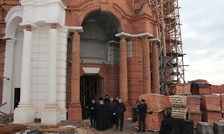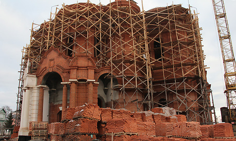 Возведение основных стен практически завершилось, начались работы по наведению купольной части. Задача, которая стоит сейчас перед строителями — как можно быстрее закрыть «периметр» здания, защитив тем самым внутренние помещения от осадков.