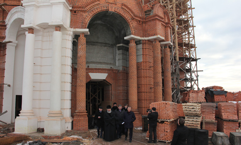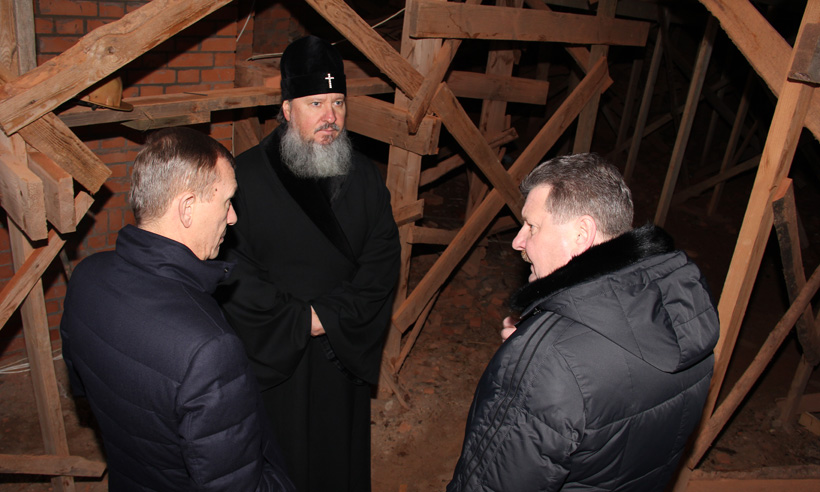 Накануне Рождества Губернатор Николай Денин и митрополит Брянский и Севский Александр посетили Свенский монастырь, обсудили ход строительства Успенского собора.
