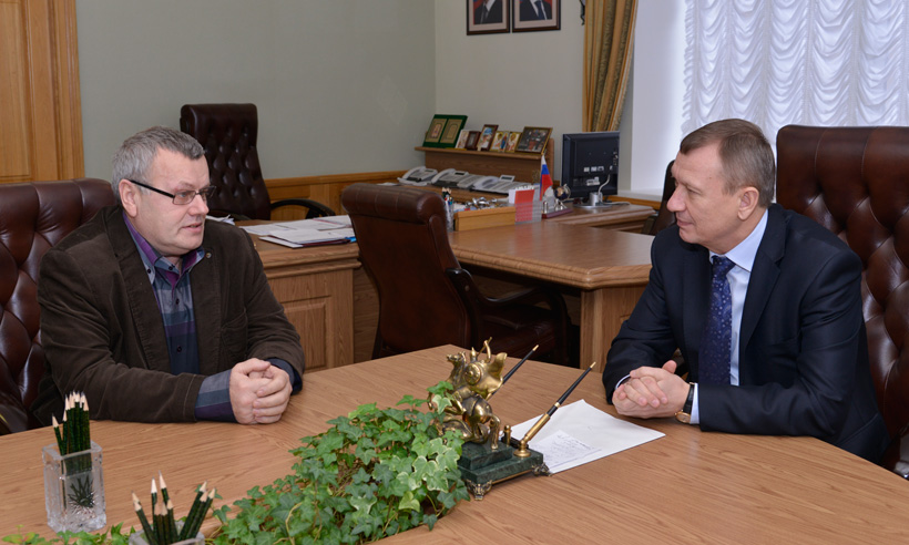 Губернатор Брянской области Николай Денин встретился с депутатом Брянской областной Думы, директором ООО «Творец» Виктором Артамоновым.