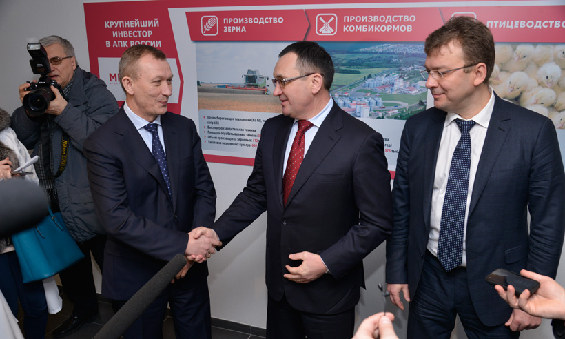 Сегодня же глава федерального аграрного ведомства Николай Федоров, Губернатор Николай Денин и президент агропромышленного холдинга «Мираторг» Виктор Линник открыли мясоперерабатывающий комплекс, построенный в рамках проекта ООО «Брянский бройлер». Основным видом деятельности предприятия является выращивание цыплят-бройлеров и последующая переработка мяса птицы. Производственная мощность — 100 тыс. тонн в год.