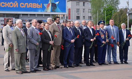 Собравшиеся почтили память погибших в годы Великой Отечественной войны минутой молчания и возложили к подножию монумента цветы.
