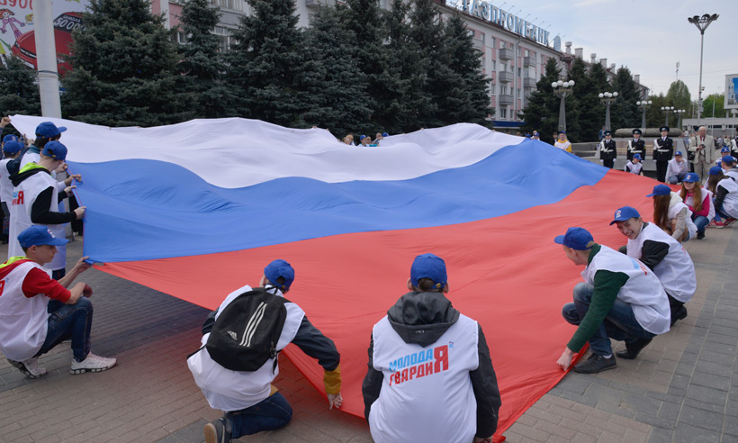 В завершение митинга стартовала патриотическая акция «Георгиевская ленточка», посвящённая празднованию Дня Победы в Великой Отечественной войне.