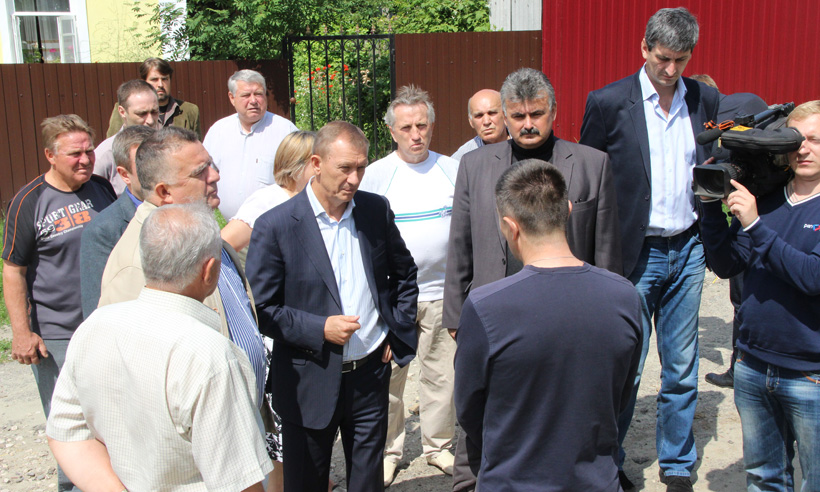 На улице Малыгина Губернатора встретила инициативная группа жителей во главе с председателем Владимиром Дмитраковым. По их словам, во время дождя улица превращается в русло реки. А поскольку дорога не видела асфальта с 60-х годов прошлого века, передвигаться по улице проблематично как на автомобиле, так и пешком. Глава региона дал поручение сделать дорогу ко Дню города. Тем более, что для Брянска это очень важная улица: в перспективе планируется открыть для автомобильного движения Малыгинский мост.