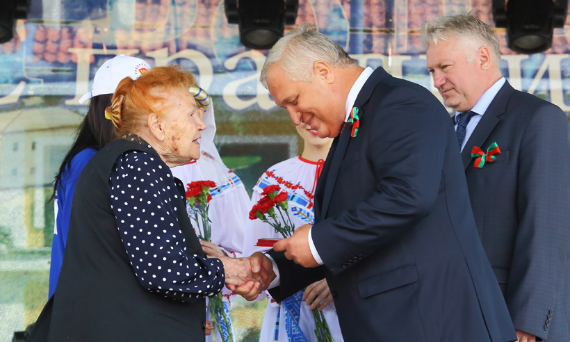 От имени Губернатора Брянской области Федор Костюченко вручил медали «70 лет освобождения Брянской области» гродненцам, принимавшим участие в освобождении Брянщины: Алексею Михайловичу Кузнецову, Прасковье Николаевне Шаминой, Зинаиде Тимофеевне Судаковой. Торжественная церемония прошла на центральной площади Гродно.
