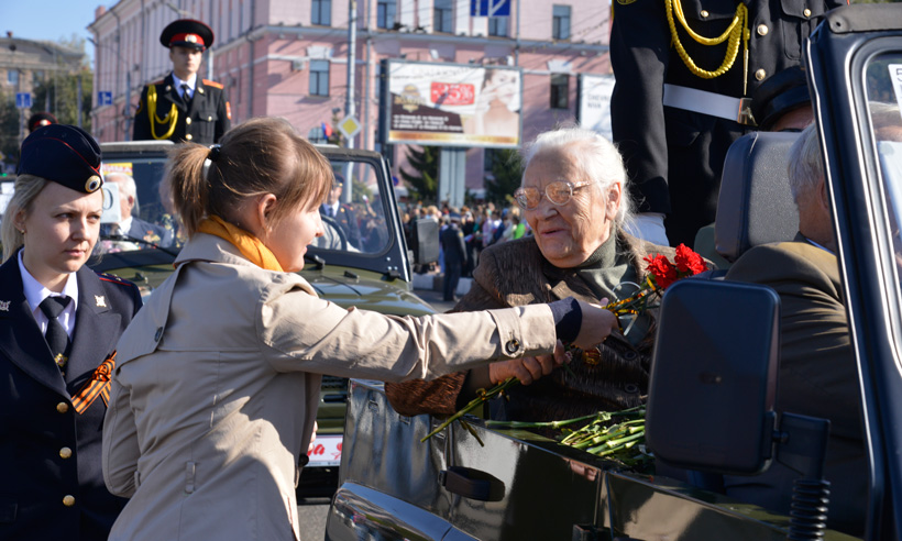 Глава региона Александр Богомаз поприветствовал собравшихся: «Этот день — символ мужества, стойкости, чести, гордости, день памяти и скорби. В те далекие годы линия фронта проходила не только там, где грохотала канонада. Миллионы советских людей, работая на фабриках и заводах, приближали долгожданное освобождение. Дорогие ветераны! В этот день я хочу сказать вам большое русское спасибо! За тот подвиг, который вы совершили во имя нас, ныне живущих. За то, что мы сегодня живем в свободной стране, растим детей, строим планы на будущее. На вашу долю выпало не только пройти тяжелыми дорогами войны, но и в послевоенное время в холоде и голоде вы поднимали разрушенное войной народное хозяйство, строили современную экономику. Ваше поколение по праву является поколением победителей. Ваш пример дает нам силу и уверенность в великую, могучую, процветающую и непобедимую Россию. Мира и спокойствия в каждый дом!»