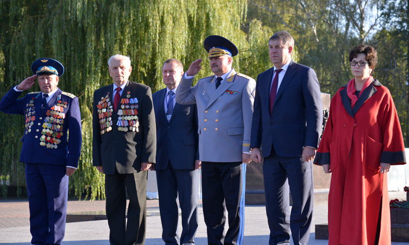 Утром в день 71-й годовщины освобождения брянского края от немецко-фашистских захватчиков, глава региона Александр Богомаз вместе с депутатом Государственной Думы Екатериной Лаховой, Председателем Брянской областной Думы Владимиром Гайдуковым, главным федеральным инспектором по Брянской области Леонидом Соломатиным, ветеранами Великой Отечественной войны, руководителями правоохранительных органов и Брянска возложили цветы к памятникам Воинской Славы на Кургане Бессмертия и воинским захоронениям на Центральном кладбище областного центра.