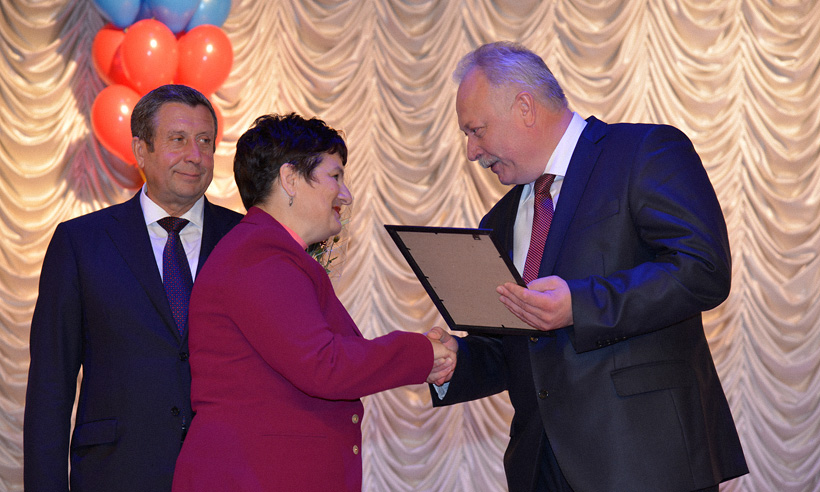 От имени врио Губернатора Александра Богомаза Сергей Пилипушко поздравил педагогов с профессиональным праздником и отметил: «Александр Васильевич не понаслышке знает, насколько тяжел труд учителя, почетен. Он родился и вырос в семье учителей: его отец был директором школы, а мать — учителем».