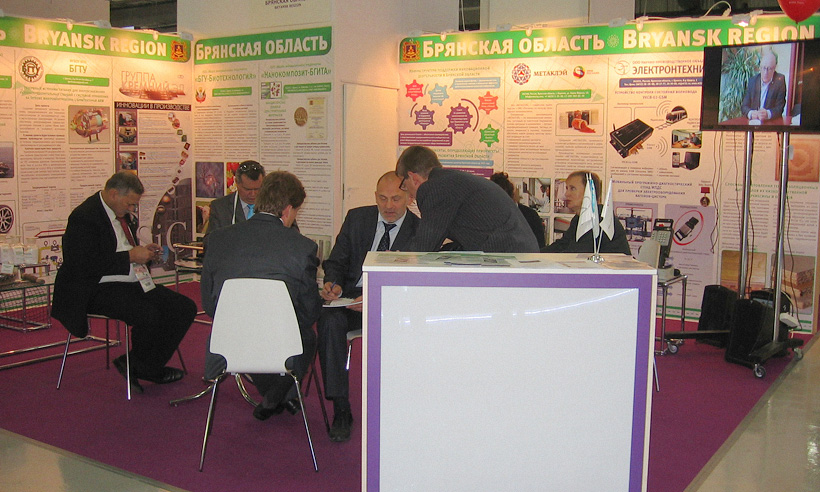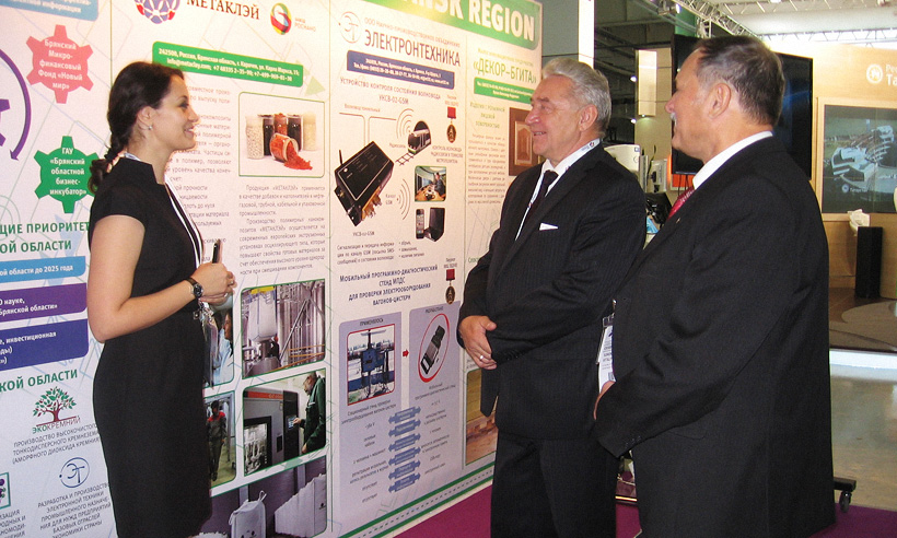В рамках региональной экспозиции от Брянской области свои разработки, инновационные проекты представили девять организаций области: ЗАО «Группа Кремний Эл», ЗАО «Метаклэй», ООО НПО «Электронтехника», ООО «Экокремний», ООО «Ивотстекло», ФГБОУ ВПО «Брянский государственный технический университет», малые инновационные предприятия, образованные при вузах: ООО МИП «Нанокомпозит-БГИТА», ООО МИП «Декор-БГИТА», ООО «БГУ — Биотехнология».