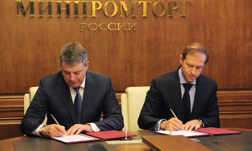 Сегодня в Москве глава Брянской области Александр Богомаз и Министр промышленности и торговли Денис Мантуров подписали соглашение о взаимодействии в сфере промышленной политики и политики в области торговой деятельности.