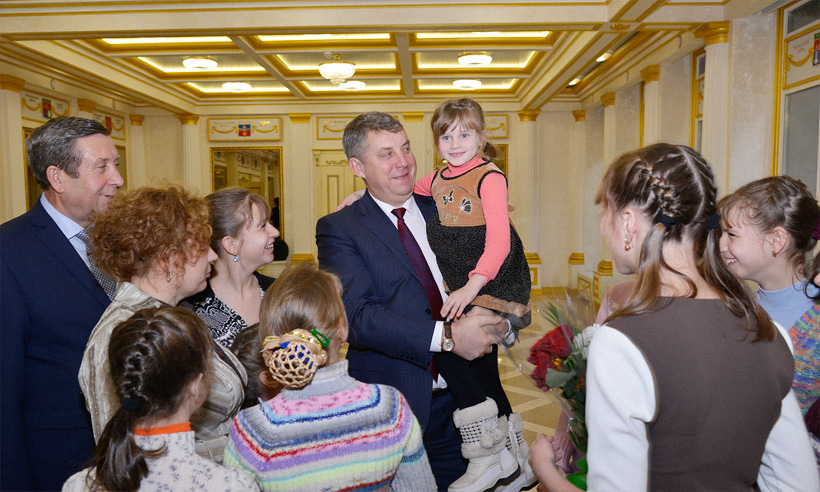 Александр Богомаз назвал несколько семей, которыми по праву может гордиться наша область. Так, в семье Бараниченко из Суземского района воспитываются 10 детей, у Воснятиных из Сельцо — 6 детей и 13 внуков. Супруги Радьковы из Суражского района растят 11 детей, 10 из которых приемные; Маклашовы из Севского района воспитывают 11 детей, в том числе 6 приемных.