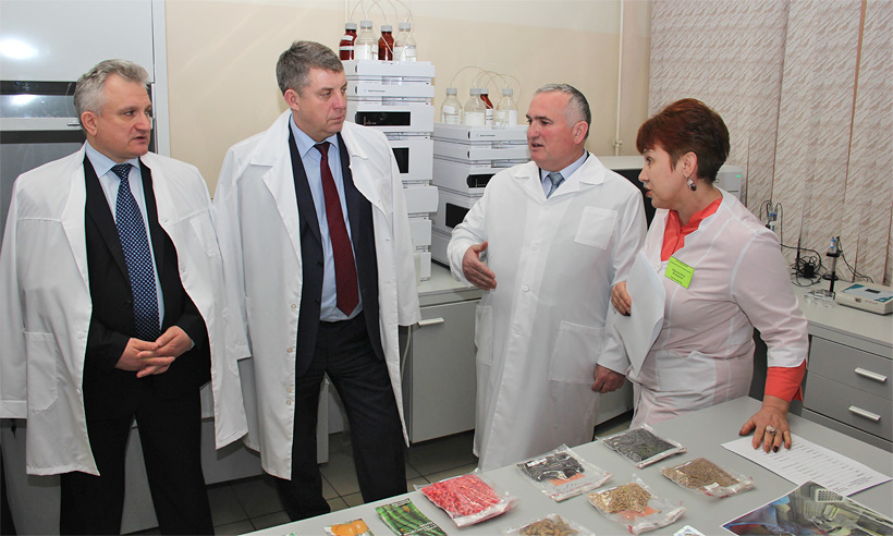В отделе фитосанитарной экспертизы Александру Богомазу продемонстрировали процесс исследования семенного материала сельхозкультур, в секторе химических исследований — оборудование для определения пестицидов в различных продуктах питания, работы по определению фальсификации молочных продуктов.