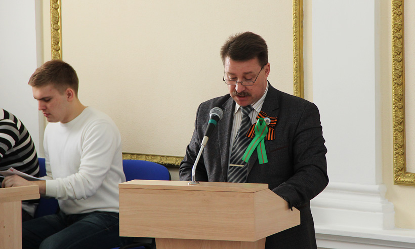 Начальник отдела студенческой молодежи и воспитательной работы регионального департамента образования и науки Олег Шевелев рассказал об участии образовательных учреждений Брянской области в подготовке и проведении мероприятий, посвященных 70-й годовщине Победы в Великой Отечественной войне 1941—1945 гг. Он отметил, что стартом для праздничных мероприятий 17 сентября 2014 года стала акция «Под знаменем Победы — к Великому юбилею!» Акция стартовала в ходе торжественного митинга на площади Партизан, где лучшими юнармейцами Брянщины была развернута самая большая копия Знамени Победы площадью свыше 200 кв. метров. Сейчас копия Знамени завершает свое шествие по школам муниципальных образований области и торжественно финиширует на площади Воинской Славы 9 мая.