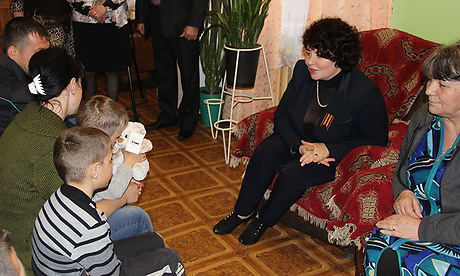 Заместитель руководителя области побеседовала с детьми на тему Великой Отечественной войны и очень была обрадована крепкими знаниями истории и конкретно роли советского народа в Победе над фашизмом. Она пожелала вынужденным переселенцам мирного неба над головой и удачи.