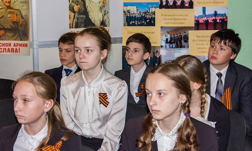 Ребятам рассказали о вехах военной истории Брянщины, о воевавших в Брянских лесах героях-партизанах, о подвигах ровесников нынешних школьников. Мальчишки и девчонки говорили о своих прадедах, принимавших участие в Великой Отечественной. Это и партизаны, участвовавшие в операции по подрыву Голубого моста, и участники Сталинградской битвы, других значимых сражений той войны. С наступающим Днем Победы ребят поздравила Ирина Кузьмина: