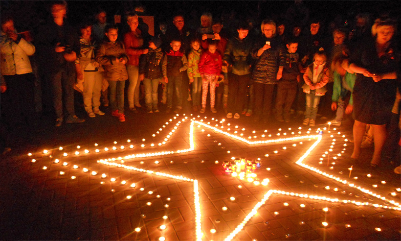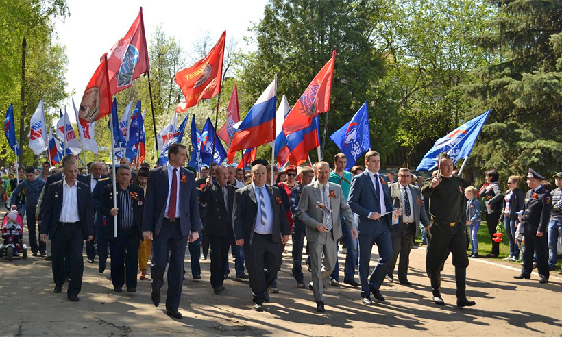 9 мая колонны трудовых коллективов и образовательных учреждений прошли маршем по центральной улице города. Из репродукторов звучали финальные слова акции «Транслируем время Победы». Время Победы отсчитывало последние секунды до светлого момента. Колонны стали прибывать на центральную площадь. Такого массового шествия не было в Жуковке, наверное, с советских времён.