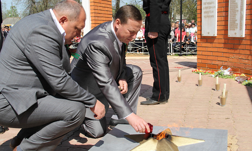 Мы благодарны тем, кто не щадя своей жизни приближал День Победы: воинам армии, участникам партизанского движения, труженикам тыла, павшим и живым. С Великим праздником Победы ветеранов Великой Отечественной войны, дубровчан и гостей праздника поздравили Г. А. Черняков, депутат Брянской областной думы А. В. Гусаров, начальник военного комиссариата по Дубровскому и Рогнединскому районам А. Н. Орлов, наш земляк генерал-майор в отставке Л. П. Петухов, председатель Дубровского районного отделения общественной организации «Российский союз ветеранов Афганистана» Г. В. Жуков, учащийся 11 класса Дубровской № 2 средней общеобразовательной школы А. Семиякин. Память героев погибших в годы войны почтили минутой молчания. Кульминационным моментом на митинге стало зажжение Вечного огня в честь 70-летия Победы в Великой Отечественной войне и в память о погибших руководителями района Г. А. Черняковым и И. А. Шевелевым. В завершение митинга прошла церемония возложения венков и цветов к мемориальному комплексу погибших воинов.