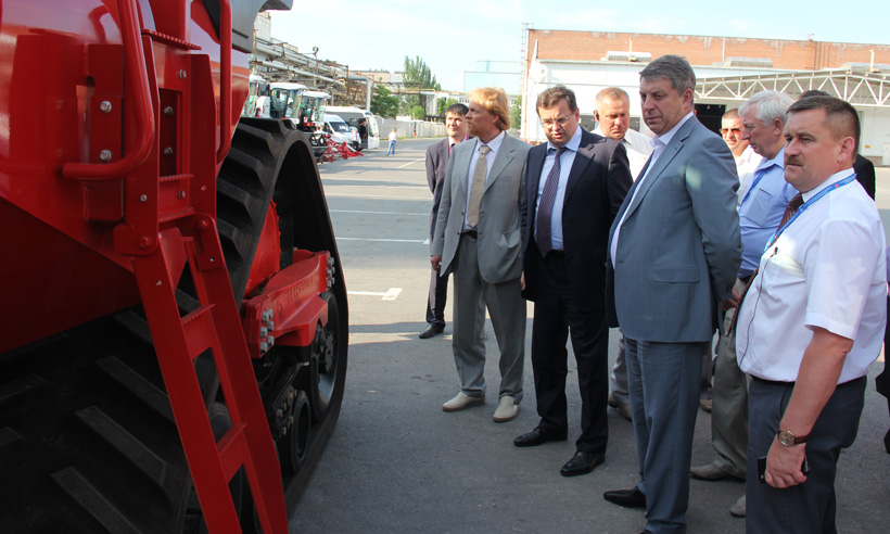 Затем делегация Брянской области побывала на экскурсии на заводе «Ростсельмаш», где Александр Васильевич лично испытал один из производимых на предприятии тракторов, проехав на нем по территории предприятия.