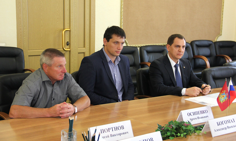 Сегодня глава Брянской области Александр Богомаз встретился с четырёхкратным чемпионом России по самбо, двукратным чемпионом Европы, трёхкратным чемпионом мира и чемпионом Европейских игр 2015 года Артемом Осипенко. Также во встрече приняли участие заместитель Губернатора Татьяна Болховитина, глава Брянской городской администрации Вячеслав Тулупов, начальник областного управления физической культуры и спорта Валерий Корнеев, заслуженный тренер России Сергей Портнов, президент Брянской областной федерации самбо Алексей Рассыльщиков.