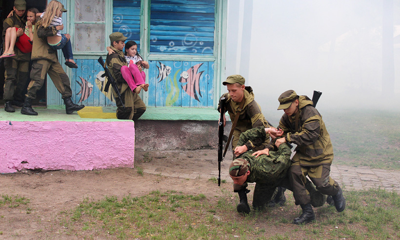 Ребята показали почетным гостям свой лагерь, продемонстрировали инсценировку освобождения захваченного здания от террористов, показательные выступления рукопашников.