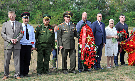 Собравшиеся почтили память павших солдат минутой молчания. Также состоялся небольшой молебен. После этого к монументу были возложены цветы.