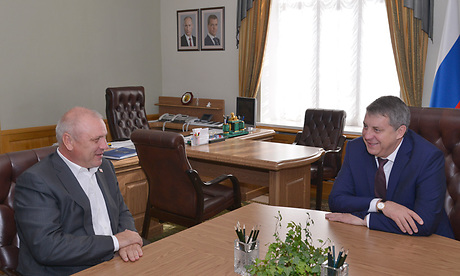Сегодня состоялась рабочая встреча Губернатора Брянской области Александра Богомаза и генерального директора АО «Управляющая компания «Брянский машиностроительный завод» Александра Василенко. На встрече также присутствовал и.о. заместителя Губернатора Брянской области Михаил Кобозев.