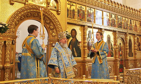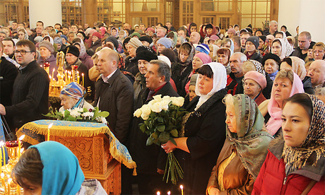В завершение службы Александр Богомаз поздравил собравшихся сразу с двумя праздниками — церковным православным и светским — Днем народного единства.
