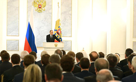 Сегодня Президент Российской Федерации Владимир Путин выступил с ежегодным посланием Федеральному Собранию, в котором дал оценку положению дел в стране и определил основные направления внутренней и внешней политики. На оглашении послания в Георгиевском зале Большого Кремлевского дворца присутствовали парламентарии из Госдумы и Совета Федерации, члены правительства РФ, председатели Конституционного и Верховного судов, генпрокурор, главы Центризбиркома, Счетной палаты и Общественной палаты, руководители регионов. В числе участников были также Губернатор Брянской области Александр Богомаз и председатель Брянской областной Думы Владимир Попков.