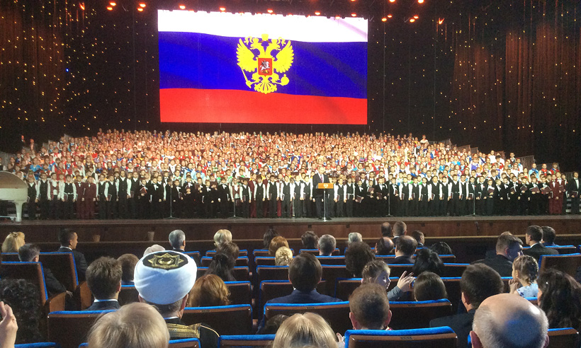Выступая перед началом концерта Детского хора, российский лидер отметил, что «коллектив объединяет тысячу юных исполнителей, которые представляют практически всю нашу огромную страну, олицетворяет собой молодую, творческую энергию и неисчерпаемый талант России, возрождение по-настоящему массового хорового движения».