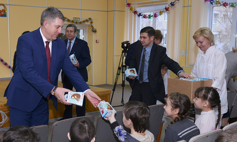 30 декабря Губернатор Брянской области Александр Богомаз, председатель областной Думы Владимир Попков, заместитель Губернатора Николай Щеглов, директор департамента здравоохранения Брянской области Андрей Бардуков, главный врач областной детской больницы Виктор Алекса поздравили детей и медперсонал Брянской областной детской больницы с наступающими новогодними и рождественскими праздниками.