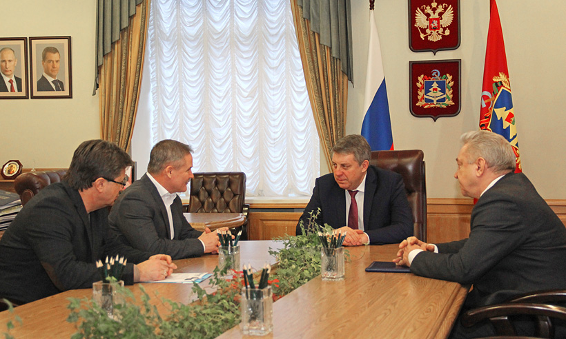 Сегодня в Правительстве Брянской области состоялась рабочая встреча Губернатора Брянской области Александра Богомаза с новым генеральным директором одного из крупных промышленных предприятий региона — ОАО «Новозыбковский машиностроительный завод» Олегом Шевченко. Представил главе региона нового руководителя завода член правления ООО УК «РэйлТрансХолдинг» Александр Коленков. Также во встрече принял участие заместитель Губернатора Михаил Кобозев.