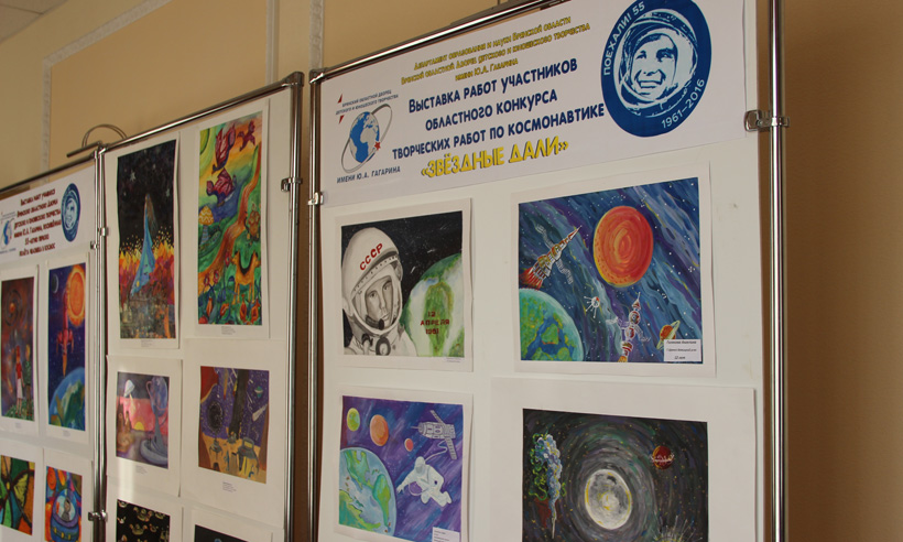 Перед началом оперативного совещания в Правительстве Брянской области была организована выставка творческих работ, выполненных школьниками в рамках конкурса по космонавтике «Звездные дали», приуроченного первому полету в космос Юрия Гагарина.