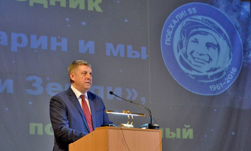 «Твердость характера, мужество народных героев, таких, как Юрий Алексеевич Гагарин, становятся отличительными чертами современных юношей и девушек. Многие из присутствующих здесь ребят наверняка мечтают о полетах в космос. Тем более что сегодня строится новый космодром, создается новая техника, разрабатываются грандиозные планы дальних космических экспедиций. Хочу пожелать, чтобы эти мечты сбылись. Но для этого нужно очень много учиться, заниматься спортом, укреплять дух и волю. Тогда победа будет за вами!» — пожелал молодому поколению Губернатор.